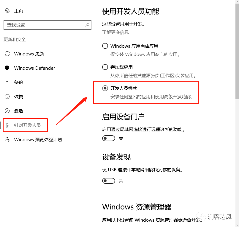 第二种,需要开启开发者选项,具体操作点击windows设置里的更新和安全
