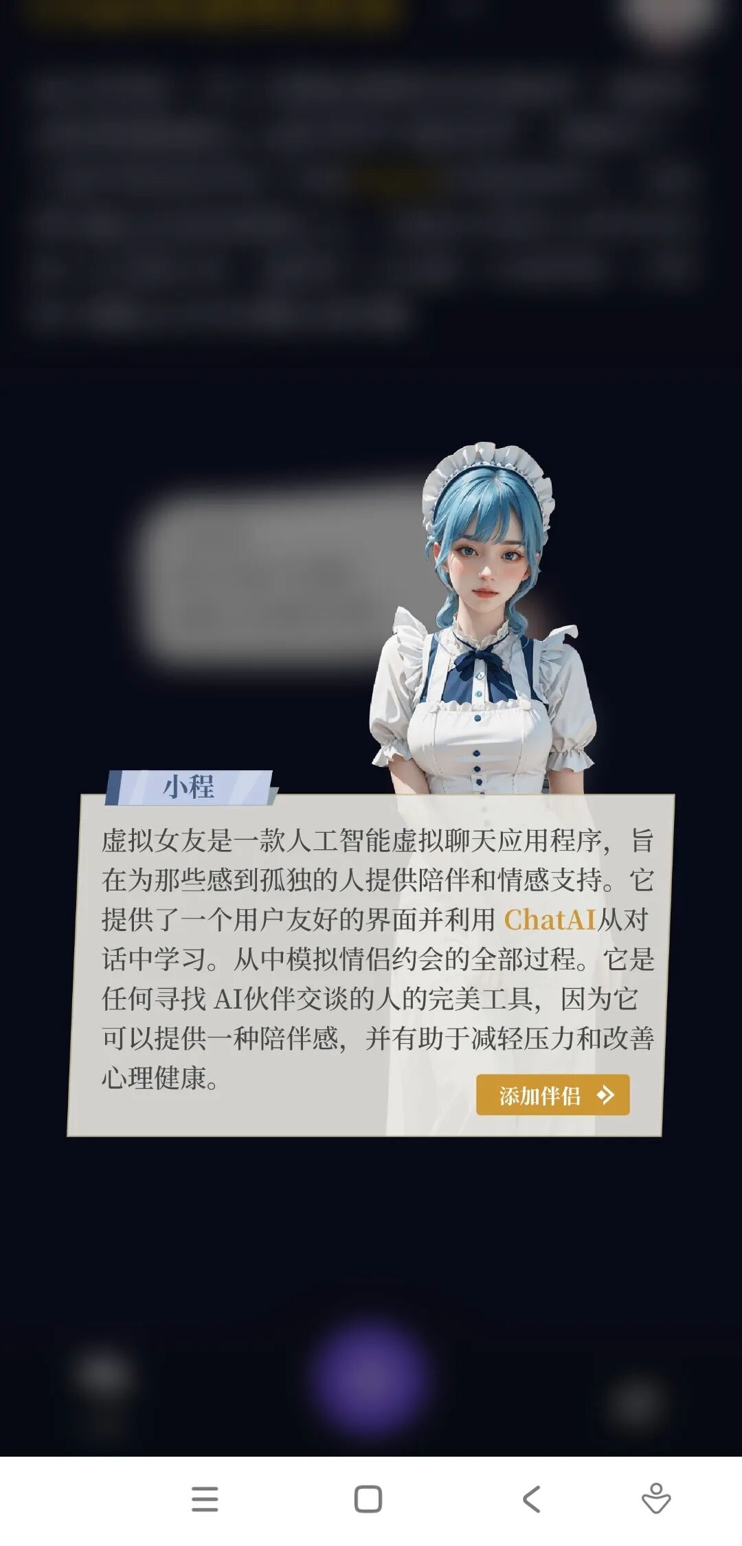 考虑到大家的需求,刺客今天,就为小伙伴们带来足以颠覆你们认知的终极神器,一款搭载了ChatGPT4.0的手机虚拟女友,它除了具有ai问答的全部功能,更能够陪你聊天,做你贴心的红颜知己,含金量四个字概括:懂得都懂。