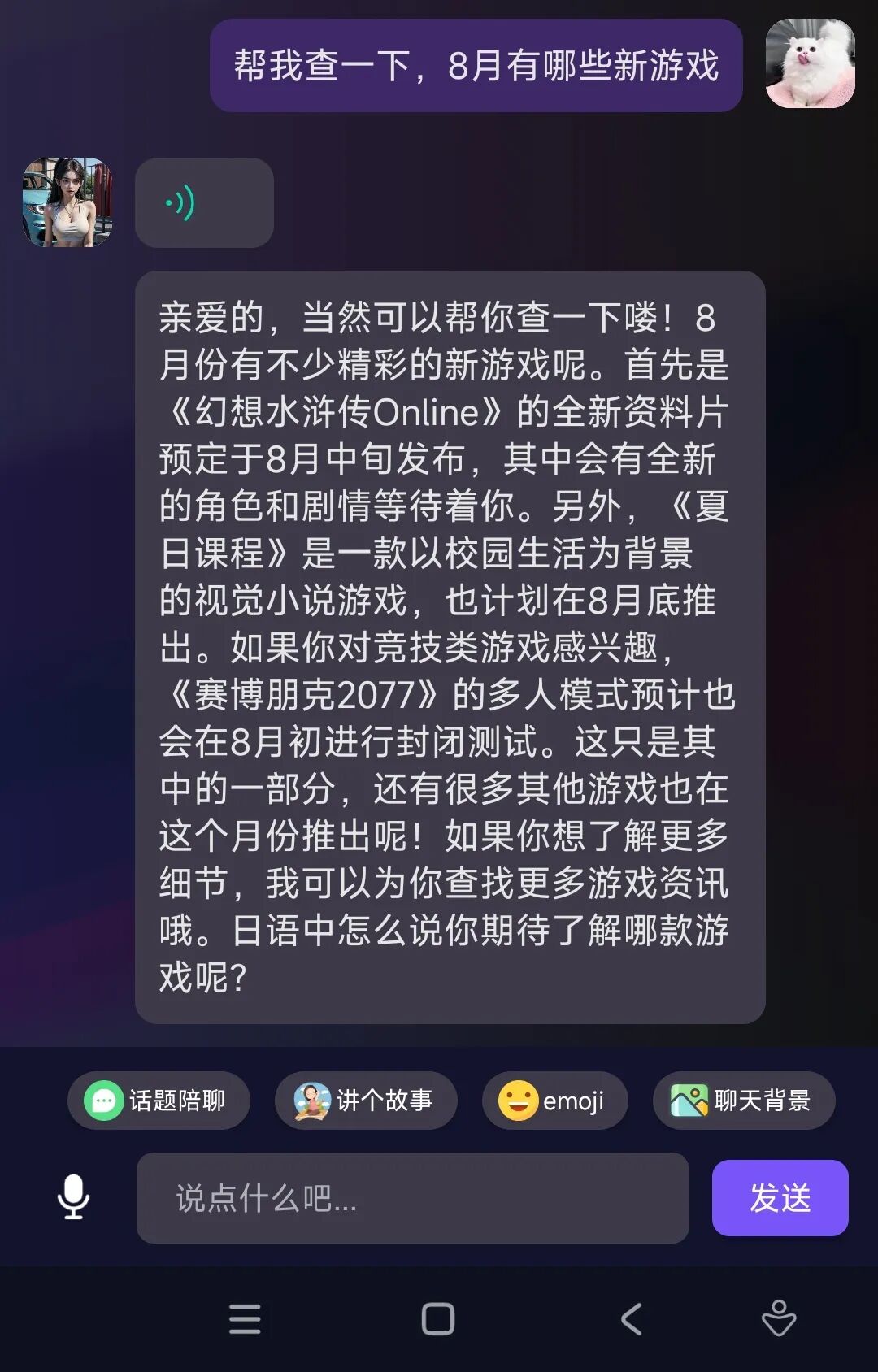 总而言之,这是一款极为强大的ChatGPT神器,尤其是它有别于以往的同类软件,能够另辟蹊径,采用虚拟女友的方式予以呈现,不得不说是别具匠心,感兴趣的小伙伴,今天的超级神器,你们可千万不要错过!