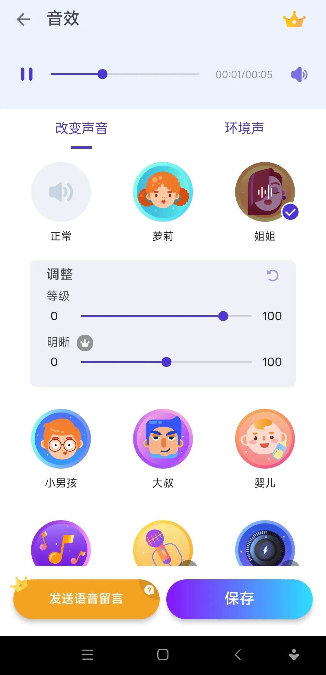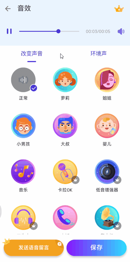 对着麦克风,录制自己想要说的话后,便可自由选择各种变声效果: