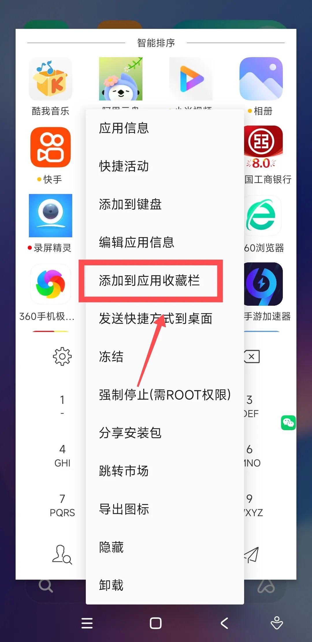 不仅如此,还有一个极为强大的功能,也就是这个添加到应用收藏栏。