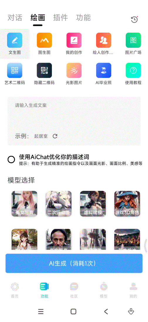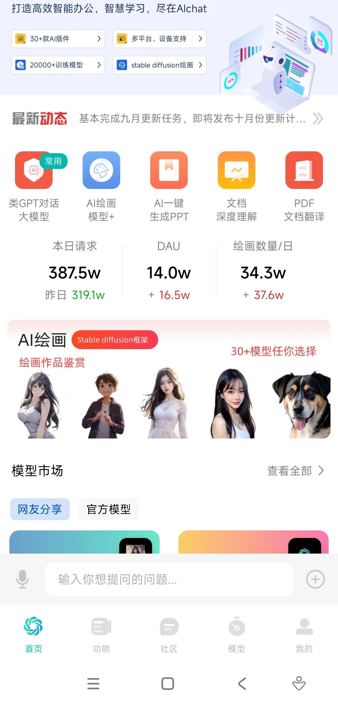 AIChat,这是一款聚合多种AI功能于一身的手机端软件APP,并且同时搭载了3.5、4.0对话模型,绘画方面则是采用了Stable Diffusion的模型,算得上是与时俱进了,这还没算上,它同时具有AI一键生成PPT、文档深度理解、PDF文档翻译等全新功能,硬核程度,可谓是有目共睹。