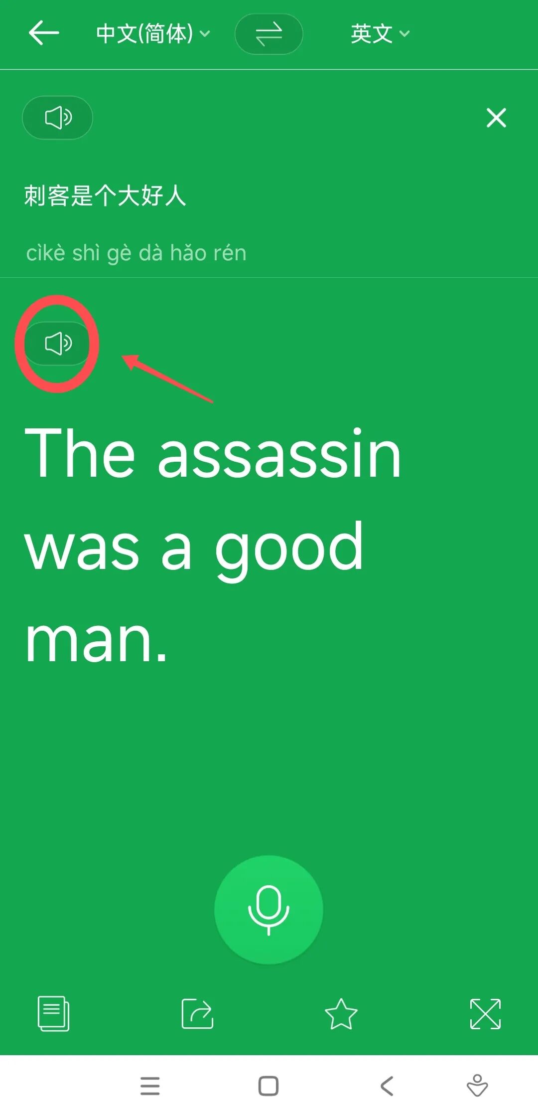 这还没完,我们点击中间的语音,甚至还可以语音录入翻译。