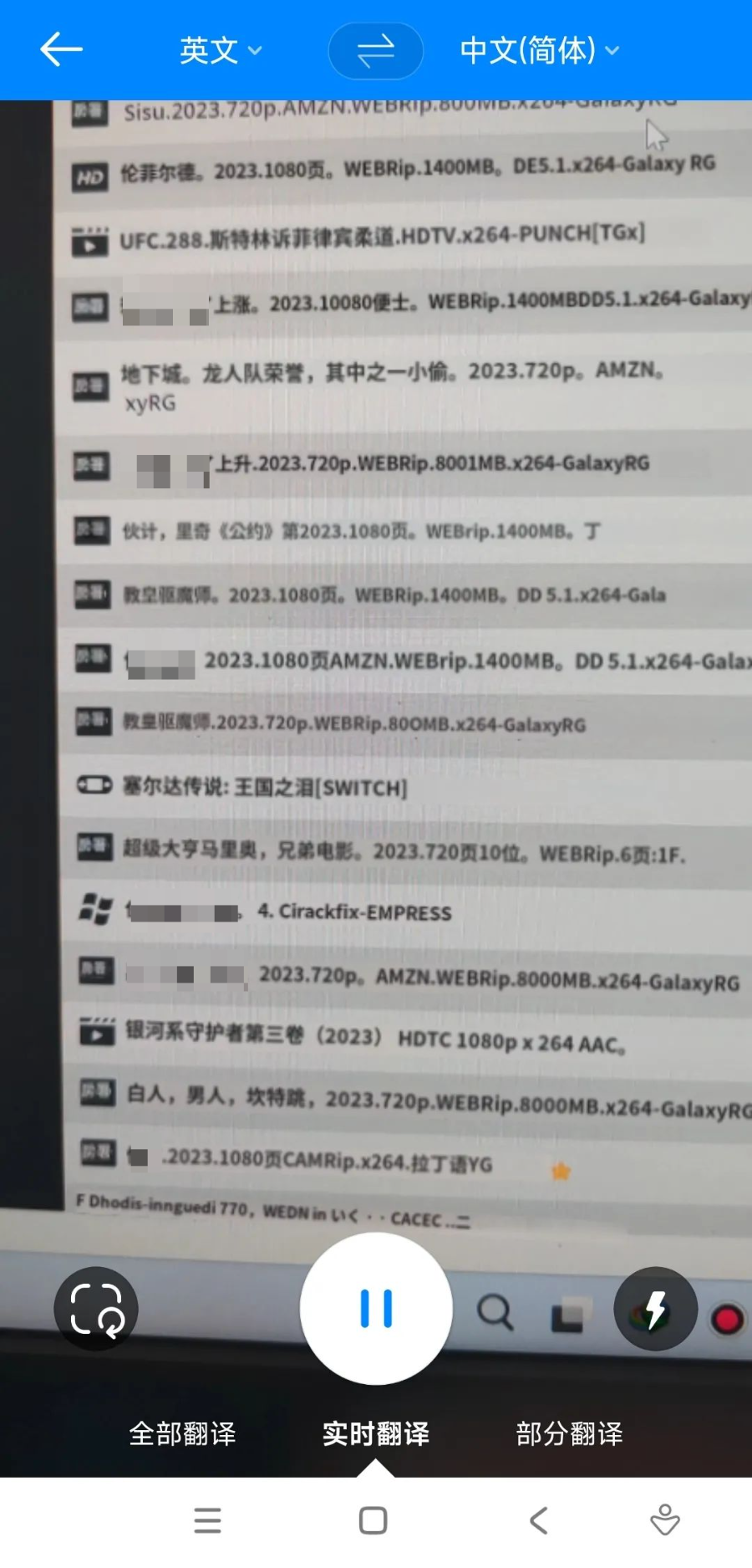 以上这些,都还只是毛毛雨,下面这个功能,那才真的是令人惊呼哇塞了,也就是图片模式,这里面包括了全部翻译、实时翻译,以及部分翻译三个内容: