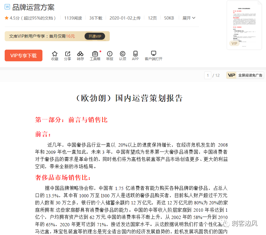 比如这个《品牌运营方案》,看得出来,里面有点东西: