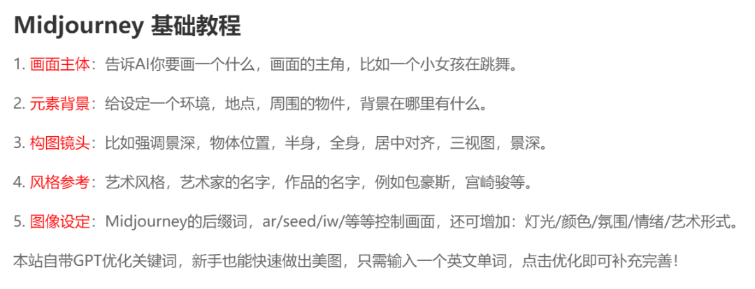 网站同时也提供了Ai绘画的基础教程,感兴趣的朋友,可以自行研究。