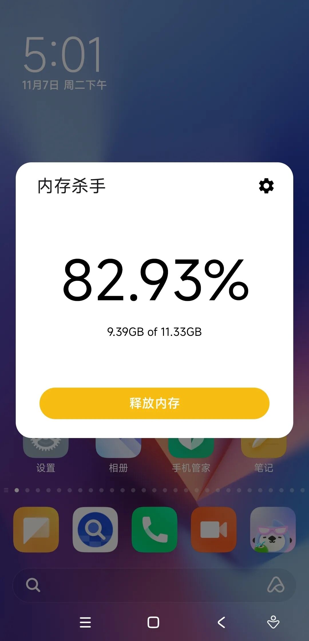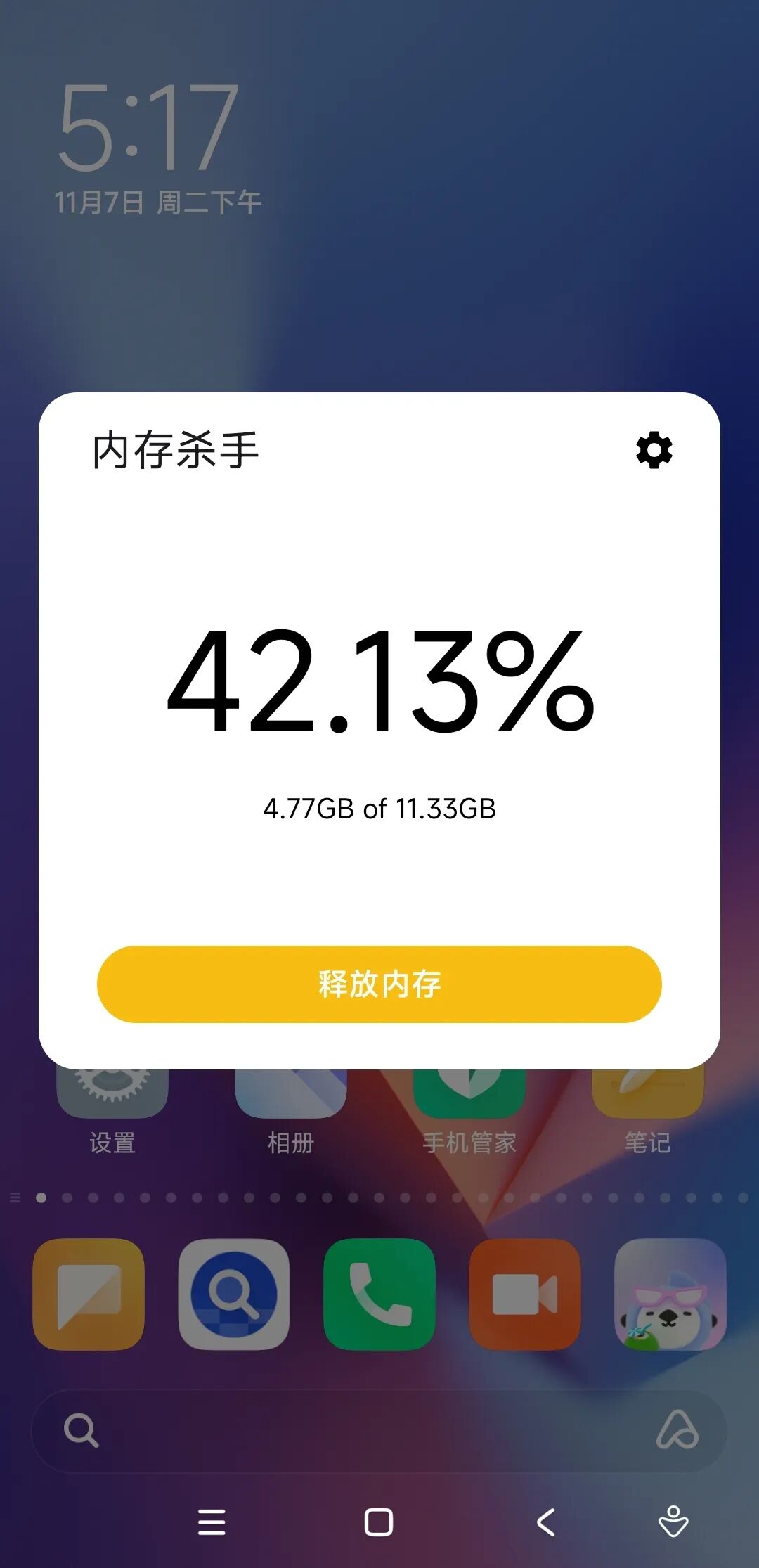 这个时候,我们只需要点击下方的释放内存,便会给你来一段小鸡啄米图。