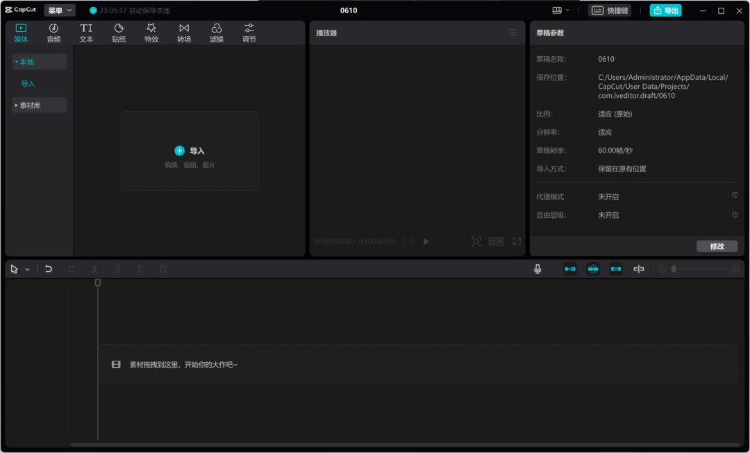 点击开始创作后,可以看到,操作界面跟剪映差不多。