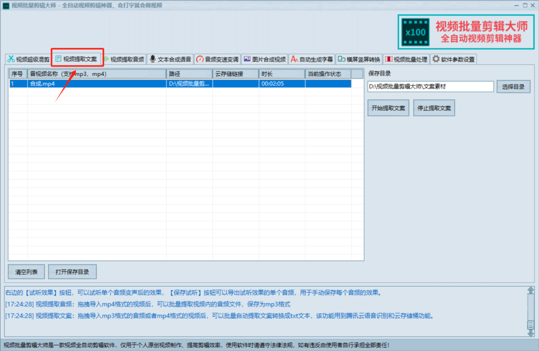 包括视频提取文案: