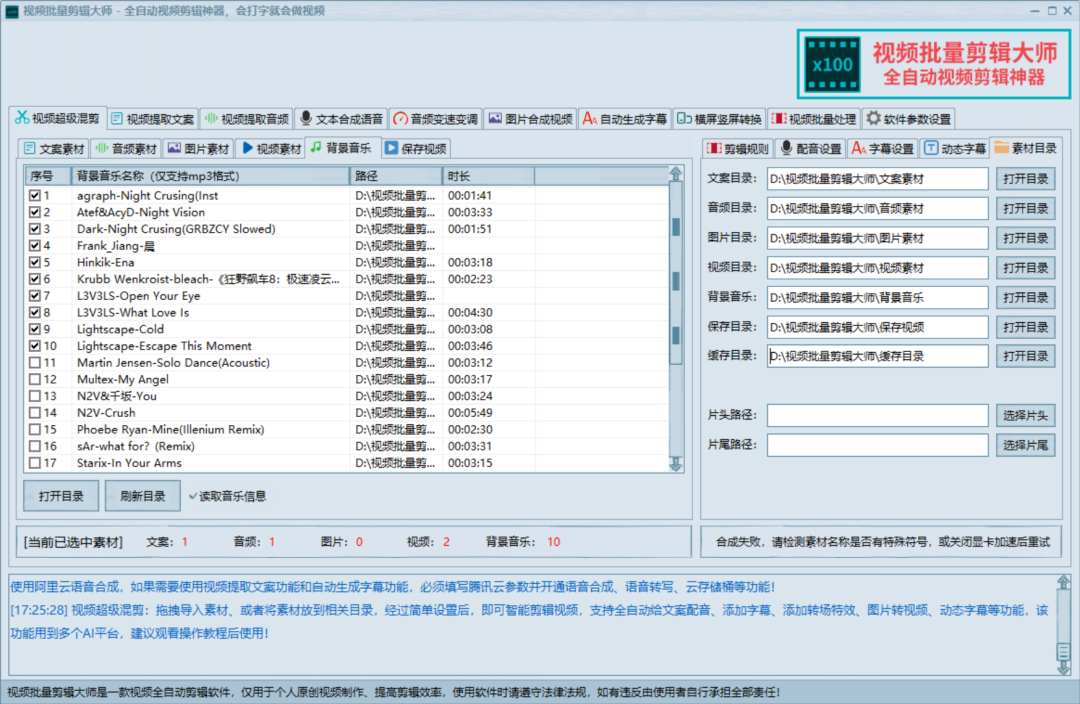 总而言之,这是一款极为强大的多功能视频剪辑软件!它不仅可以全自动批量剪辑海量视频内容,更是自带了文字转语音、视频提取文案、视频提取音频、视频批量处理等诸多实用功能,对于从事内容创作和视频剪辑的小伙伴来说,今天的超级神器,可千万不要错过!