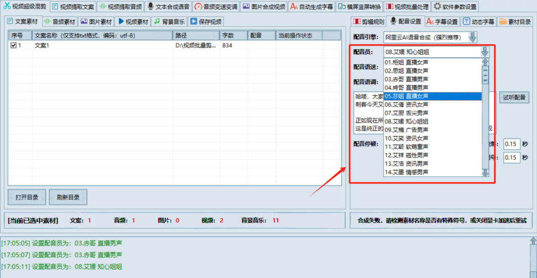 不仅如此,软件甚至自带了AI配音:
