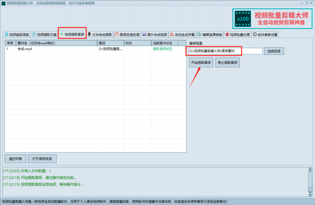 视频提取音频: