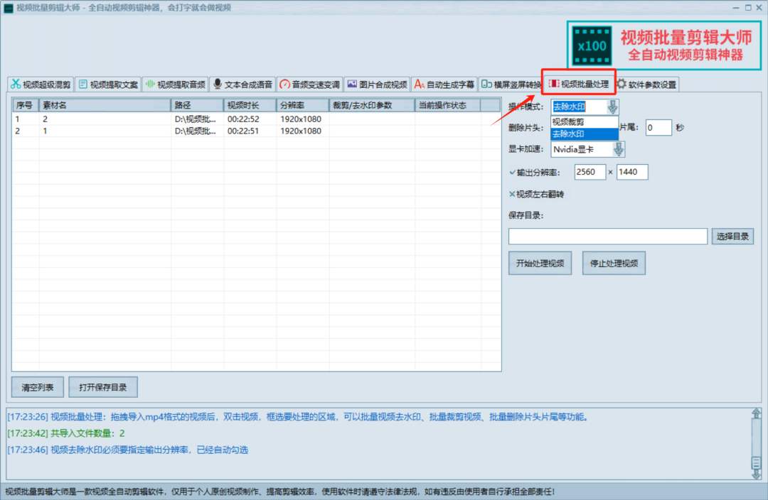 以及视频批量处理,全都安排上了,尤其是这个批量处理,它同时支持裁剪和去水印,可谓相当的硬核。
