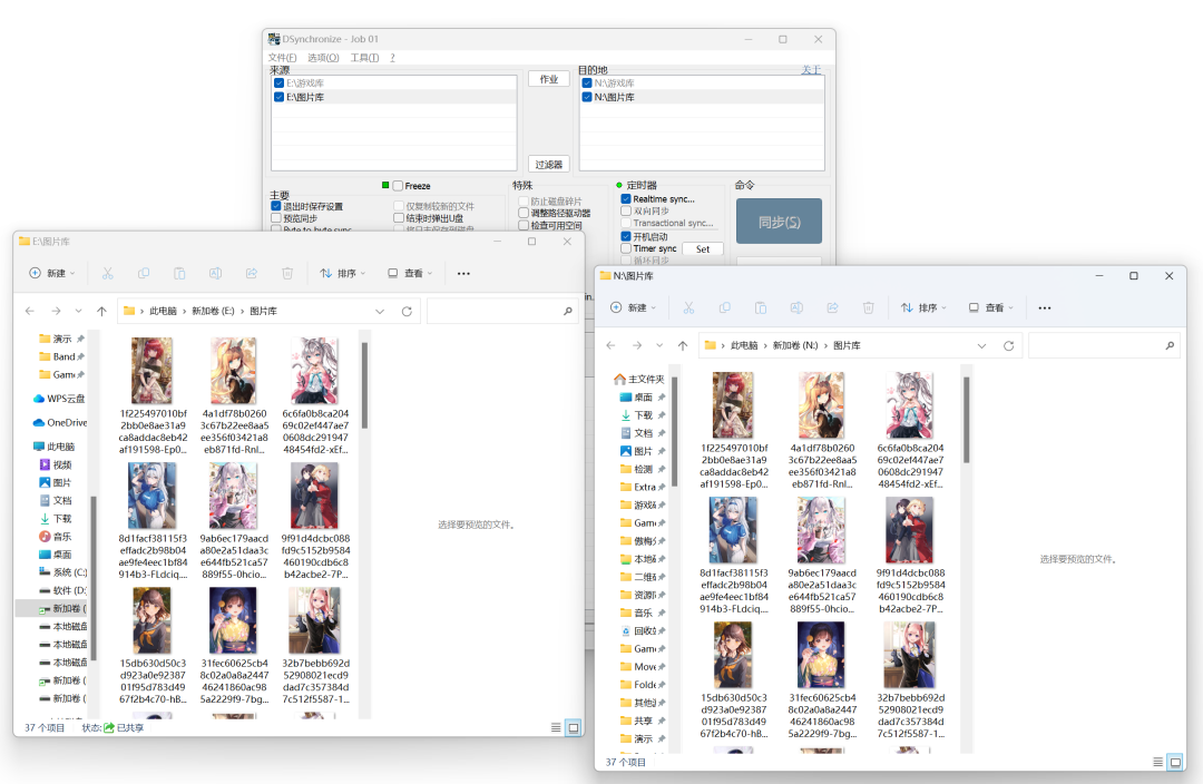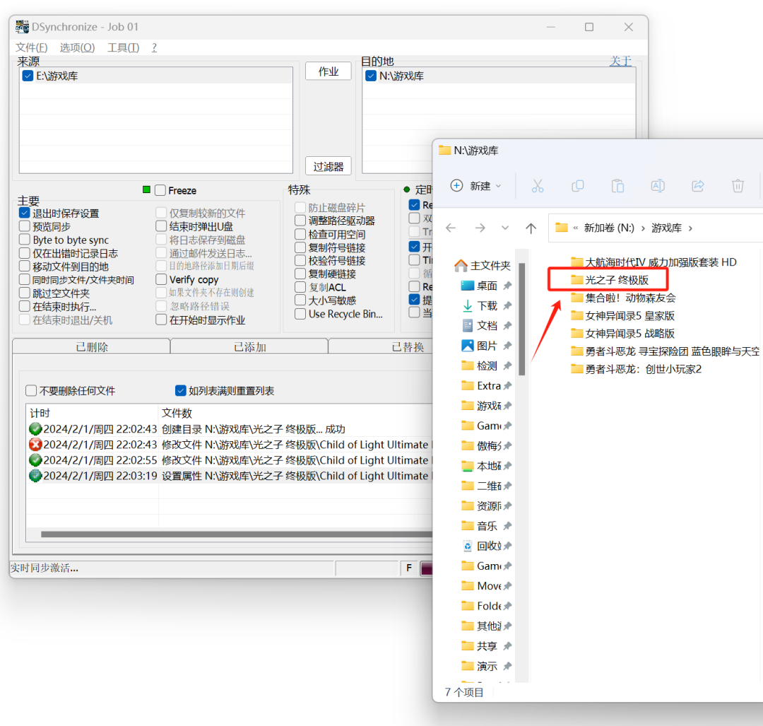 正如你们现在看到的,软件会自动拷贝,将来源文件夹里的内容,同步到目的地文件夹去。