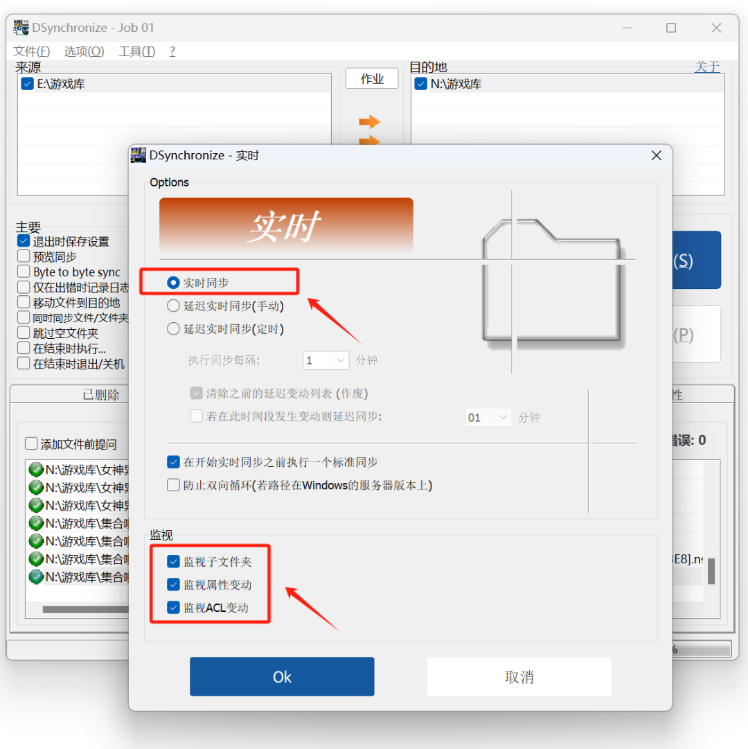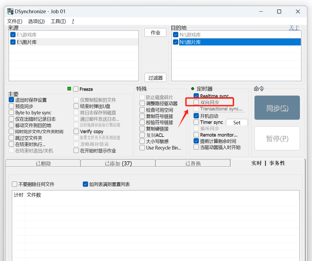 除此之外,软件甚至还提供了双向同步功能,这个其实很好理解,既可以是a到b,也可以是b到a,任何一边的变化,都会同步反馈给另外一个。