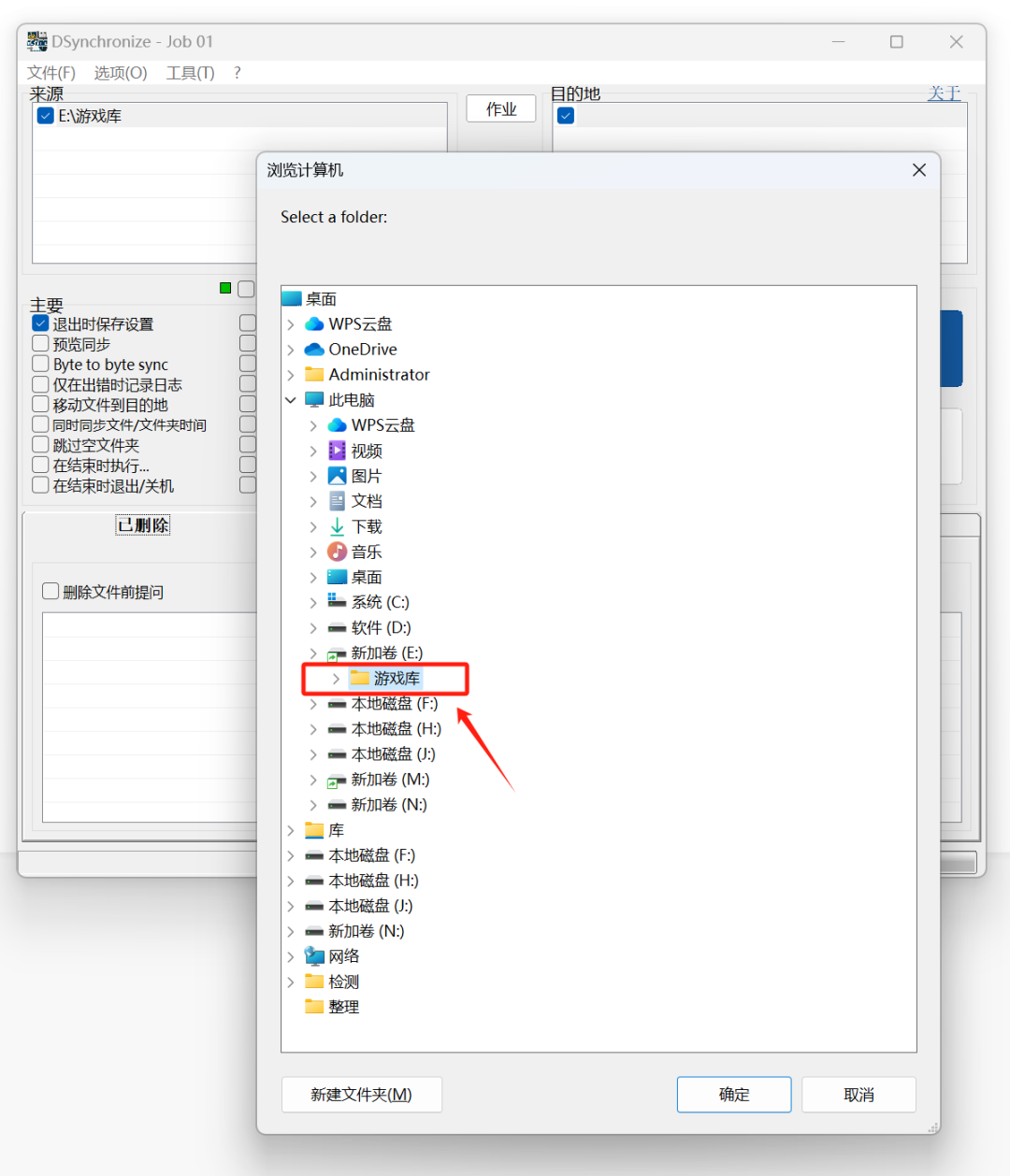 然后选定相应位置,这里既可以是文件夹,也可以是盘符: