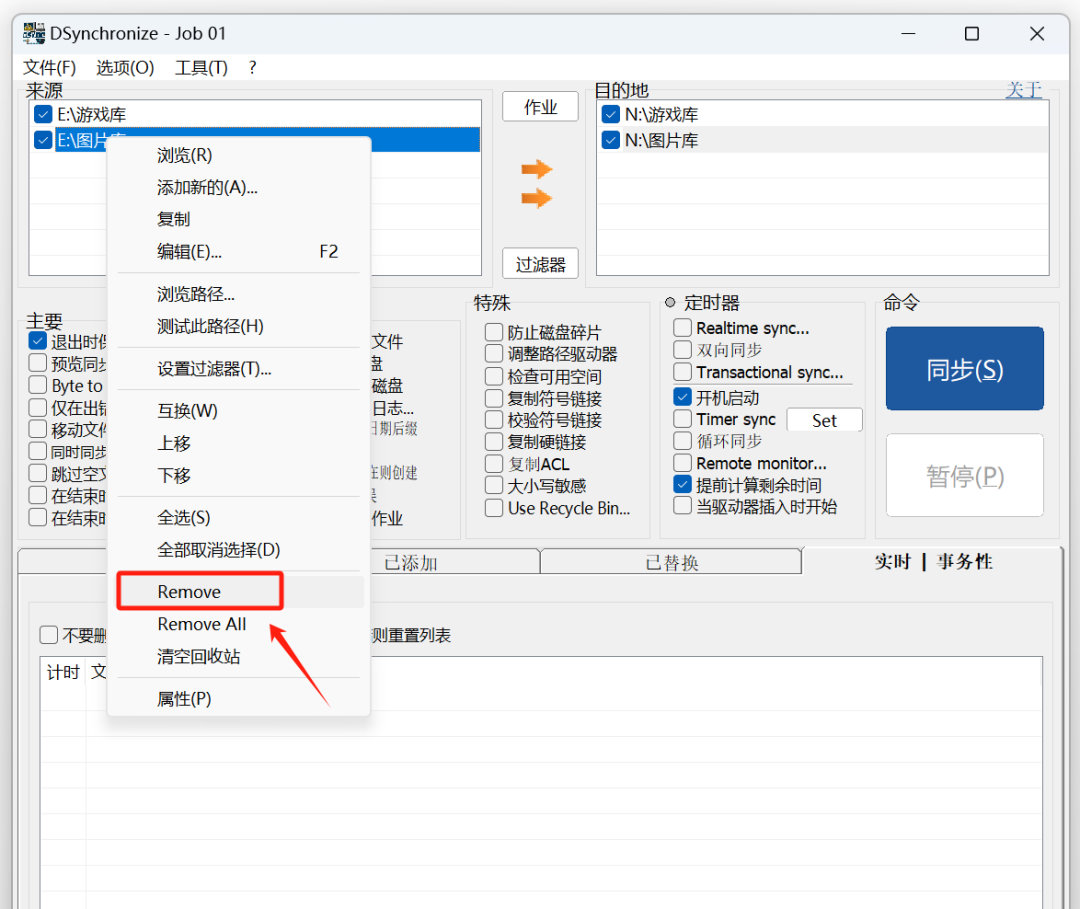 如果想要取消同步,可以直接点击移除,然后添加新的路径: