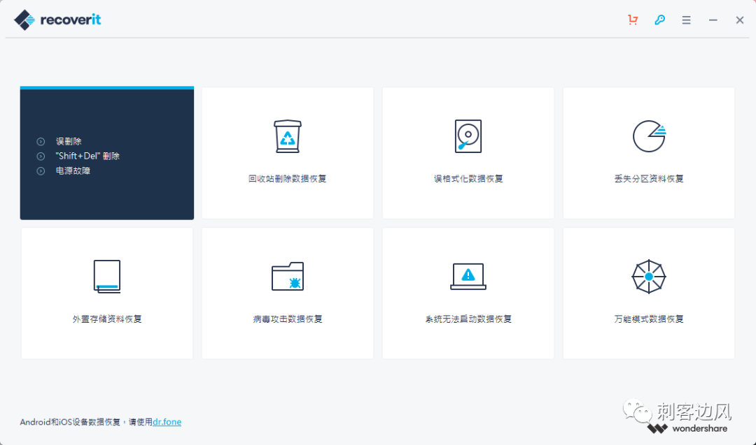 万兴数据恢复专家,这是一款电脑及U盘的数据恢复工具,也可以说是市面上最为强大的数据恢复软件,其算法十分强大,支持任何格式的数据恢复,可以轻松的修复各种丢失损坏的图片、视频、文档等数据,包括PSD。