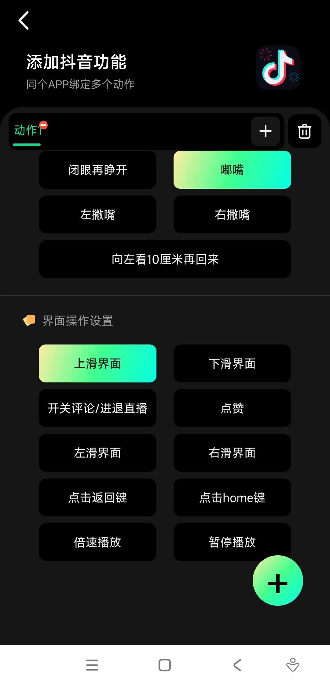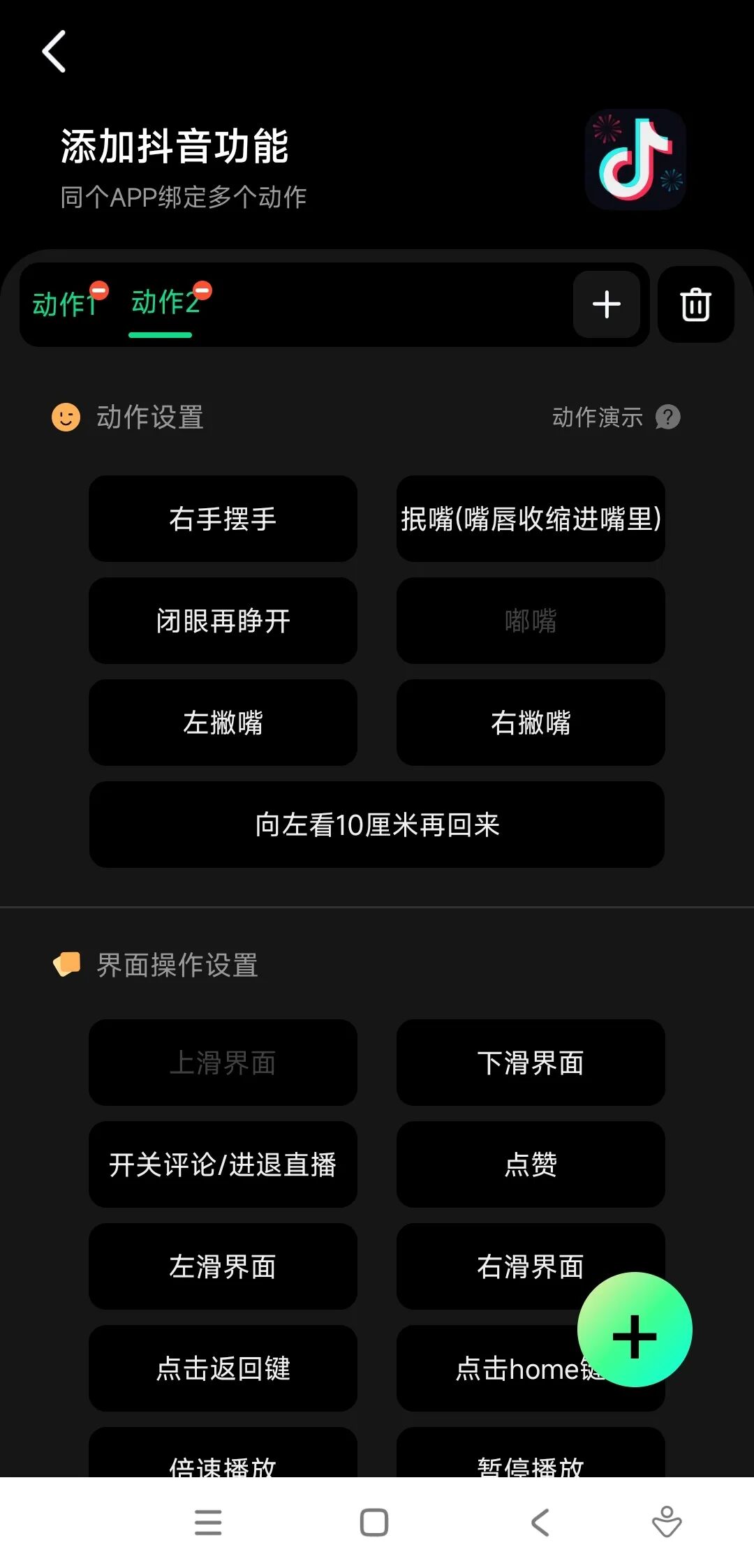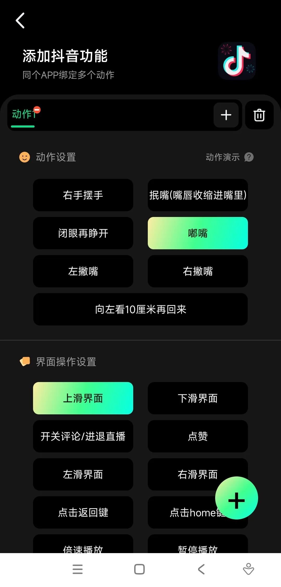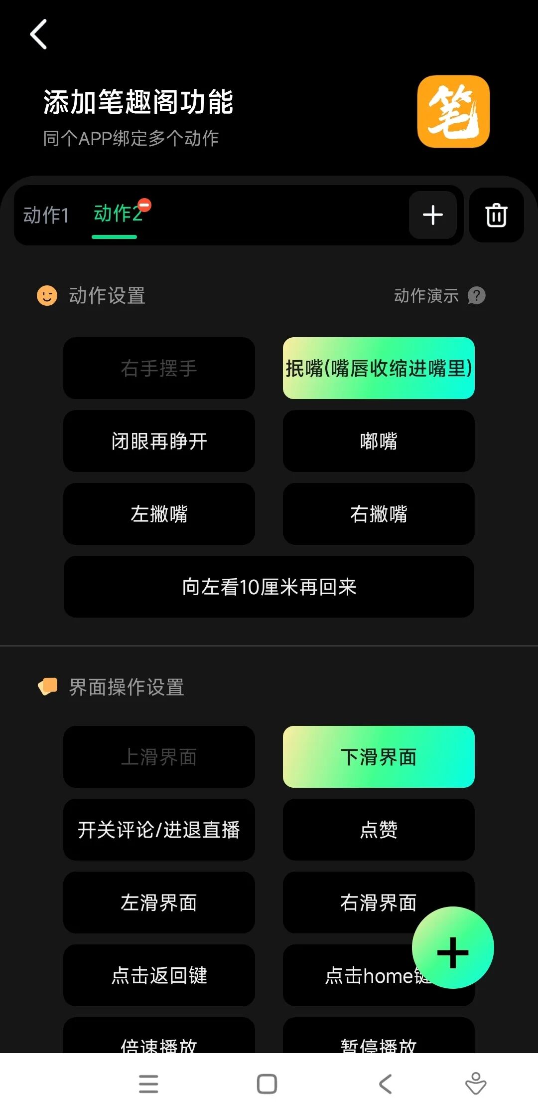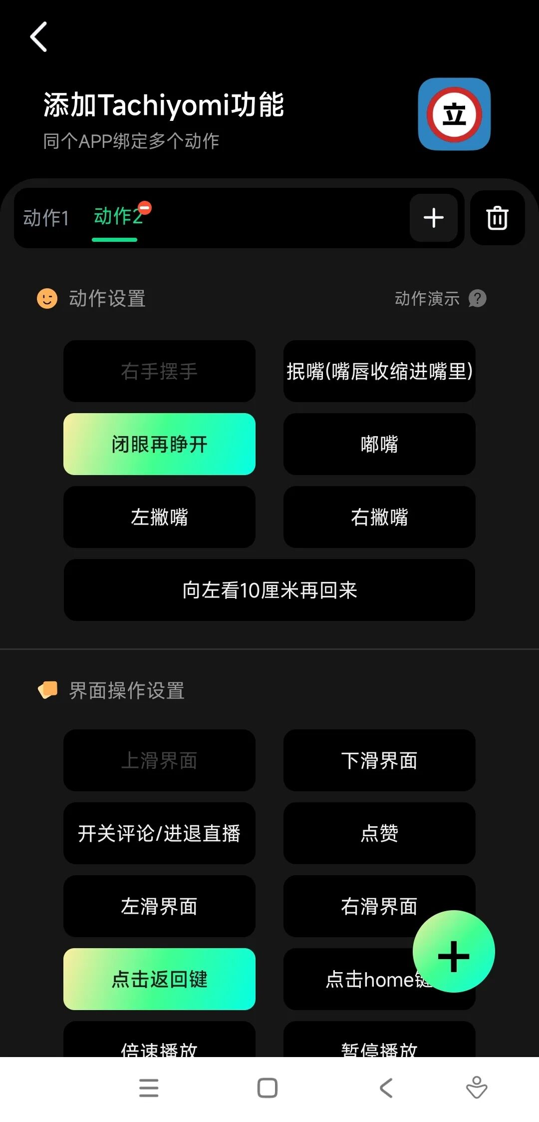 点击右下角的加号,可以设定更多动作,人性化十足!