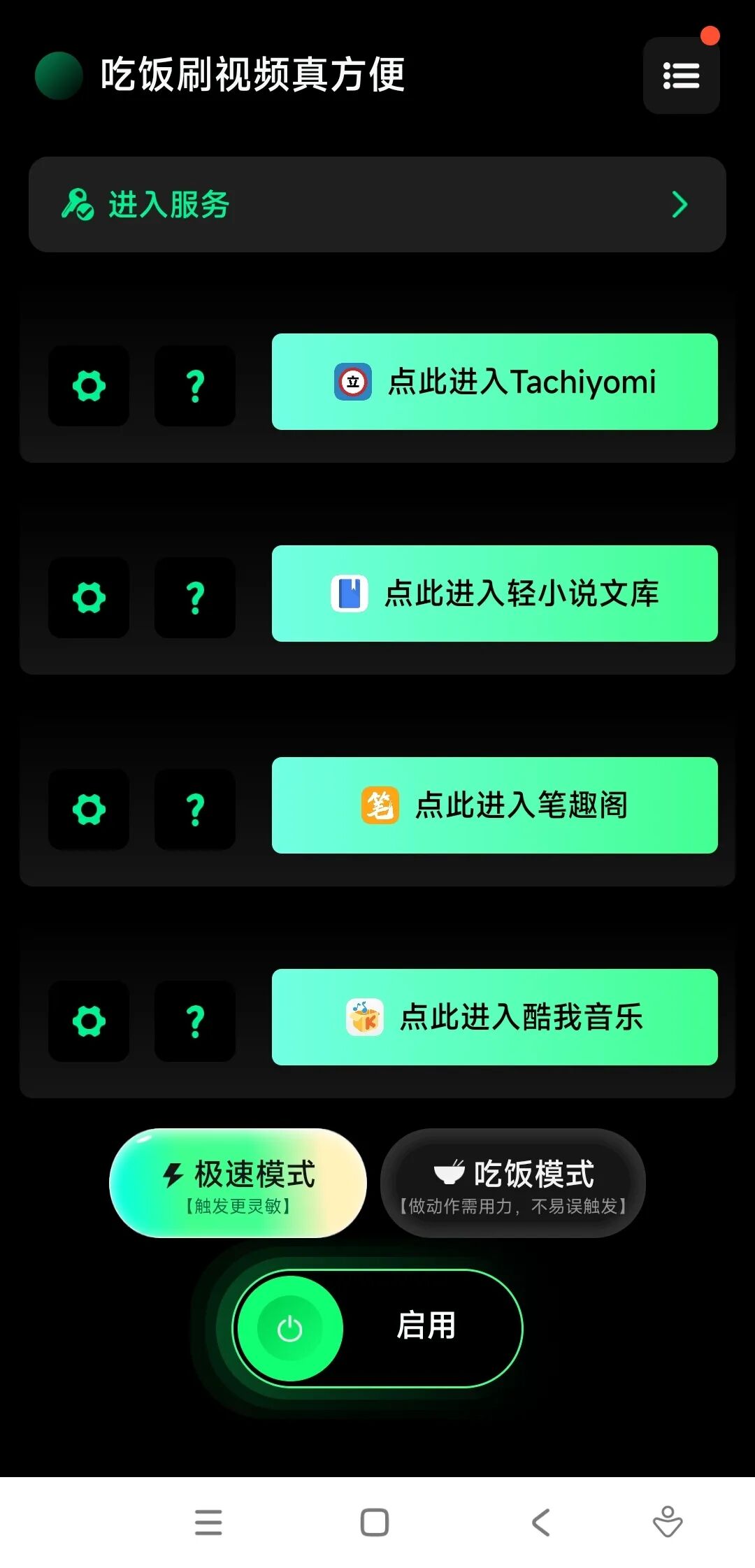 返回主页,启用下面的服务,再点击进入对应软件,即可生效: