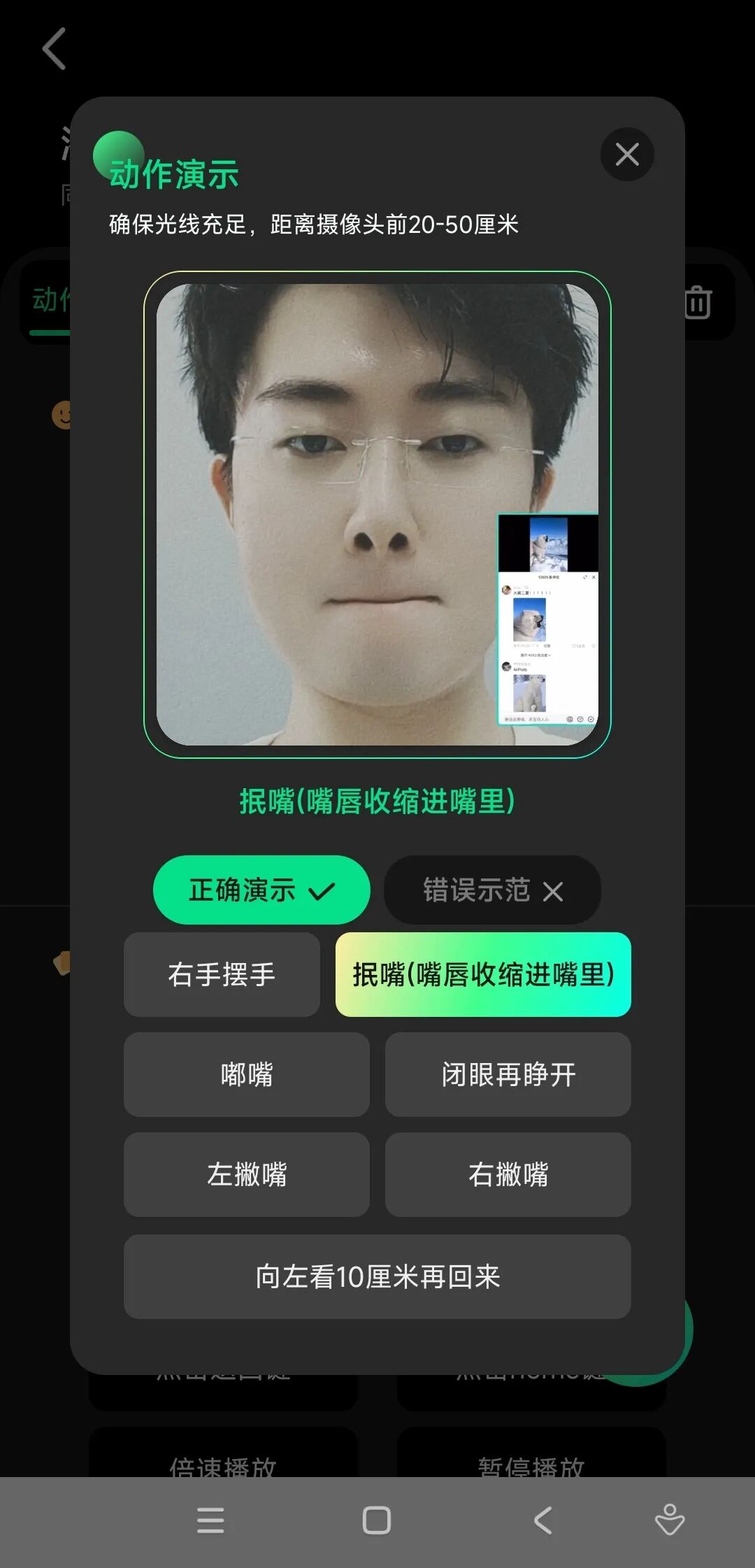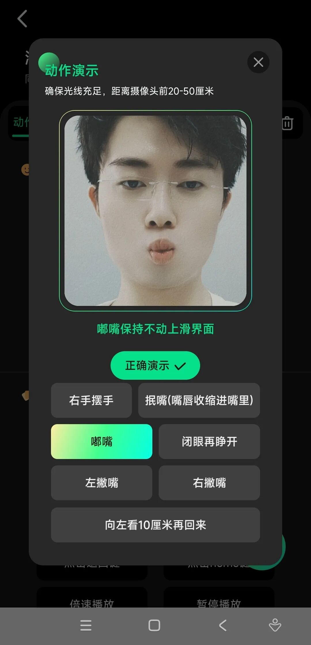 比如说:嘟嘴这个动作,刺客对应的,就是看短视频时的上滑界面: