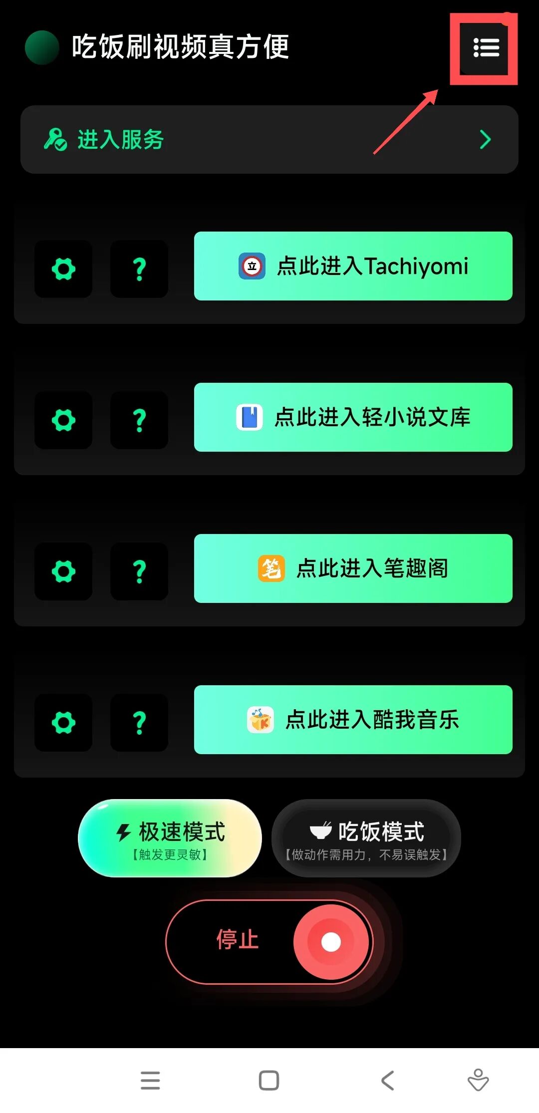 具体怎么添加其他APP呢?也很简单,我们点击右上角的菜单栏: