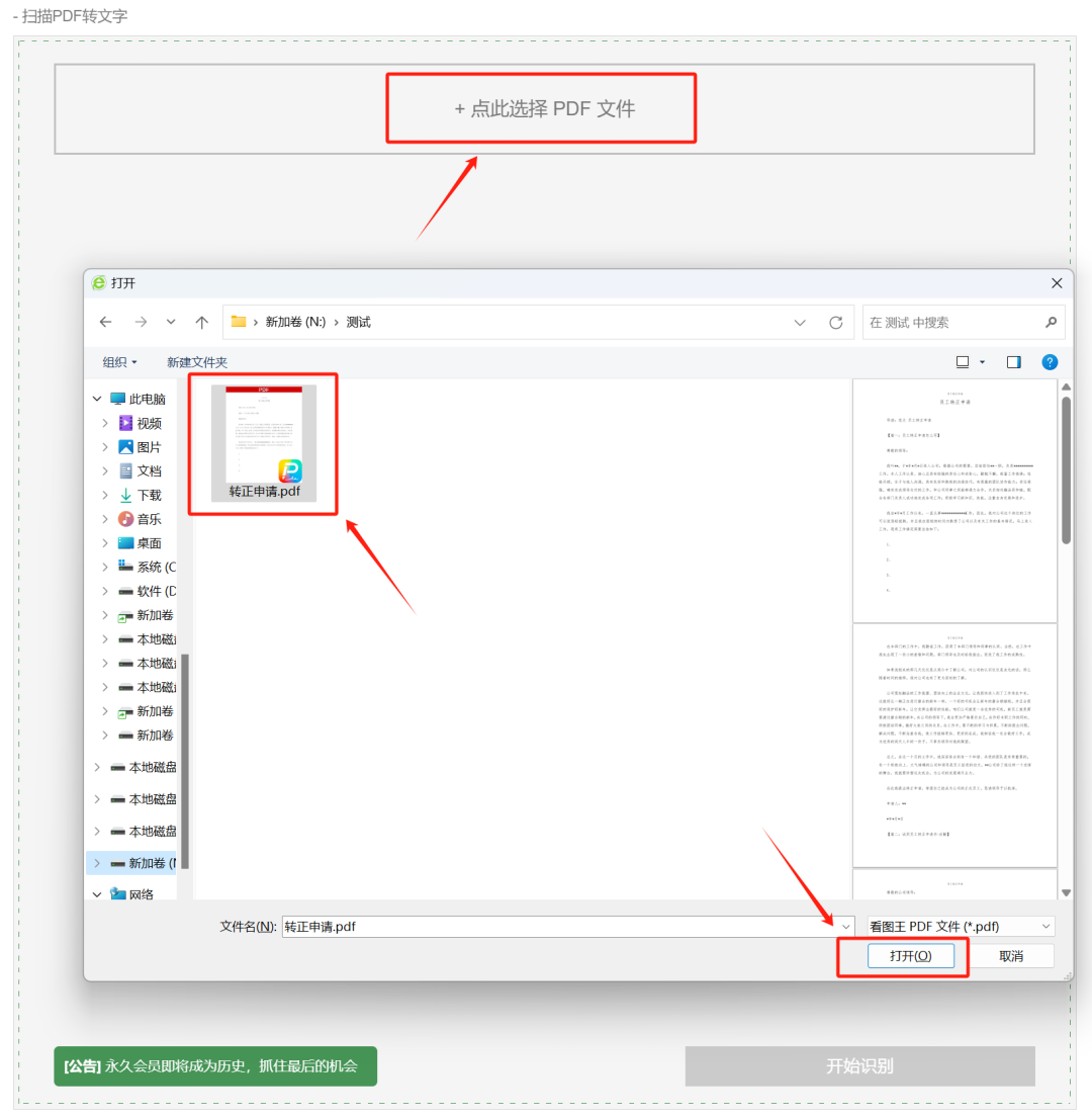 点击顶部选择PDF文件,然后,将刚刚生成好的PDF添加进去: