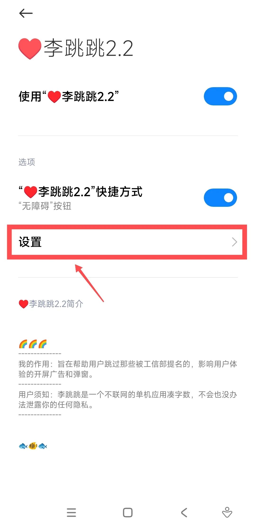 李跳跳2.2(含12214规则),这是一款可以说是无人不知无人不晓的手机软件APP,它可以帮助我们快速跳过开屏广告,以及使用过程当中,经常出现的各种弹窗等等,所以一经发布之后,便得到了朋友们的广泛好评,那么刺客今天带来的,是它目前最新的2.2版本,以及对应的12214条规则: