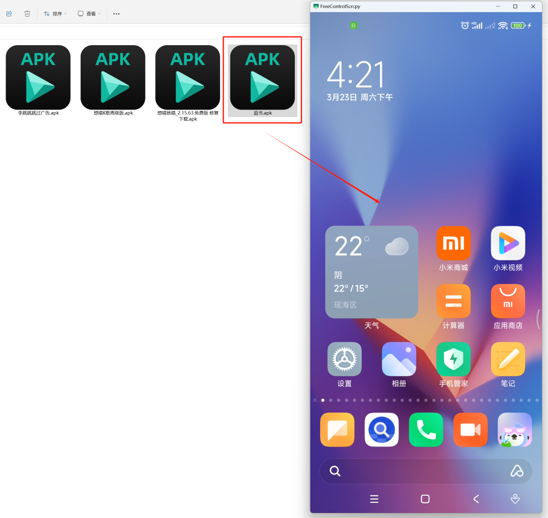 甚至可以将APK文件,拖拽进去进行安装: