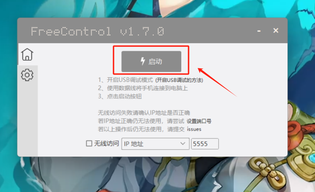 具体使用非常简单,我们只需要将USB连接电脑和手机,并点击启动: