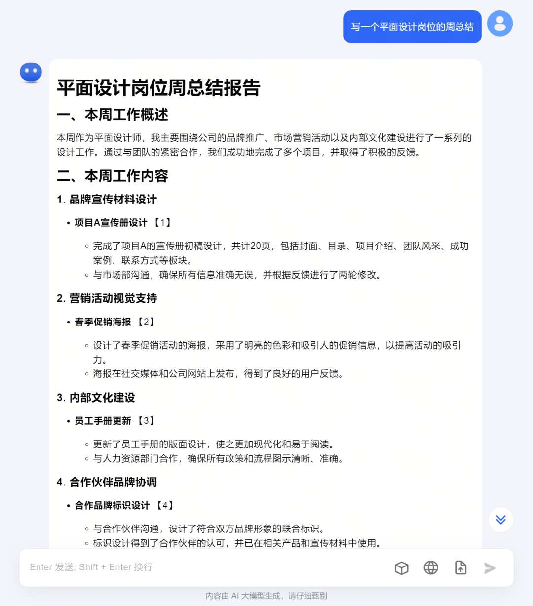 比如我们平时要写的工作总结,以前总要折腾半天,如今呢?一秒钟搞定!