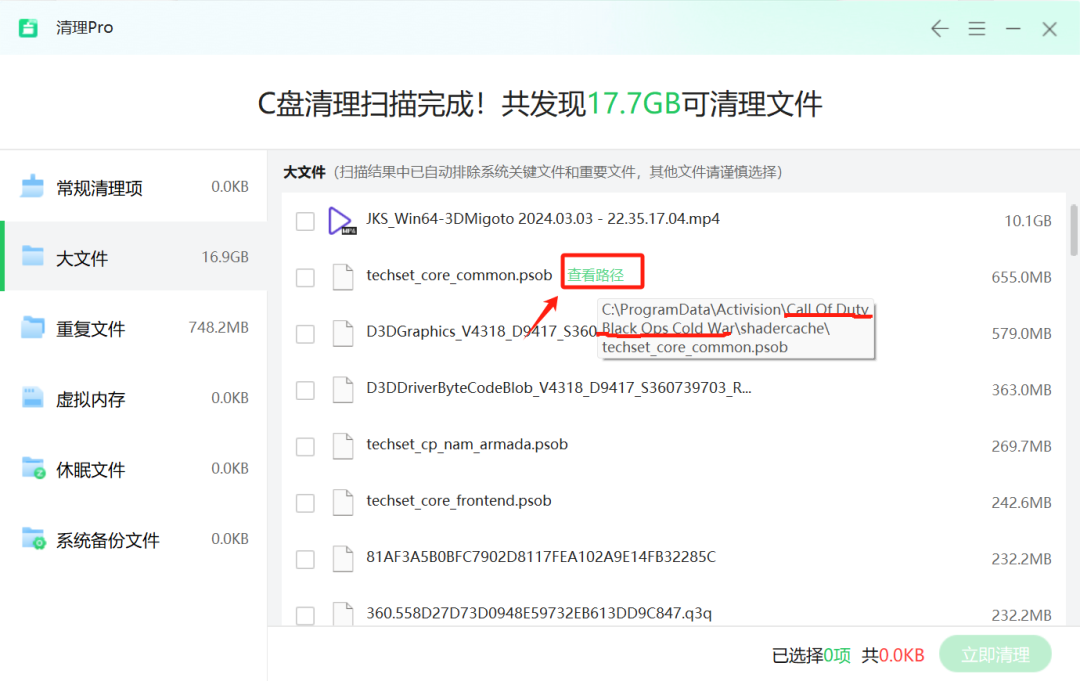 就这样三下五除二,刺客的C盘空间瞬间清爽!