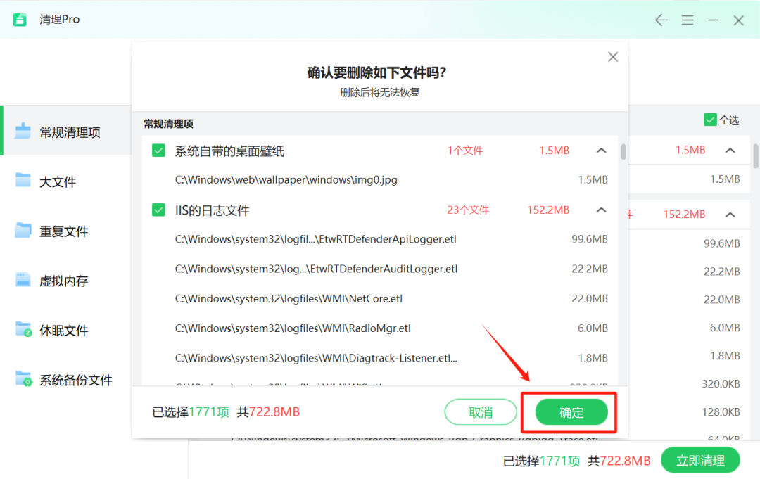 对于常规清理项,完全不用考虑,直接点击全选立即清理。