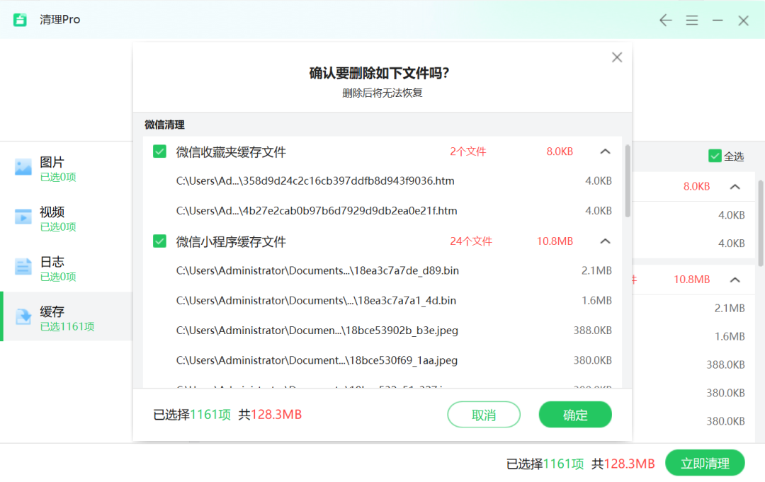 这里可以看到所有临时缓存文件,包括各种图片、文件、文档等等。