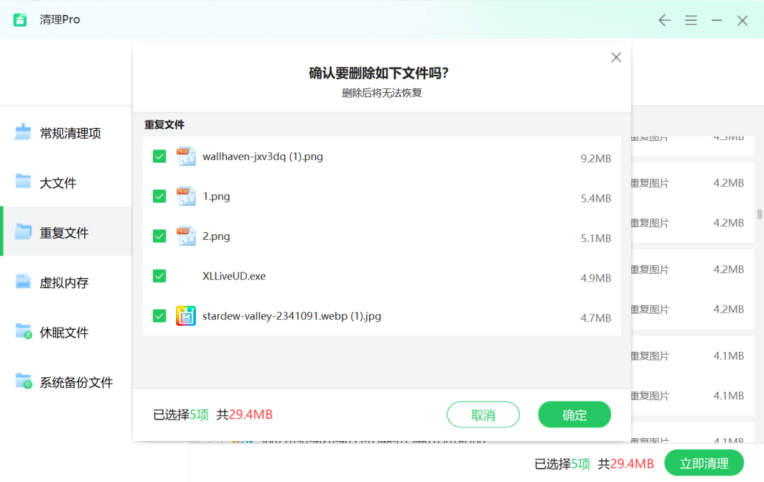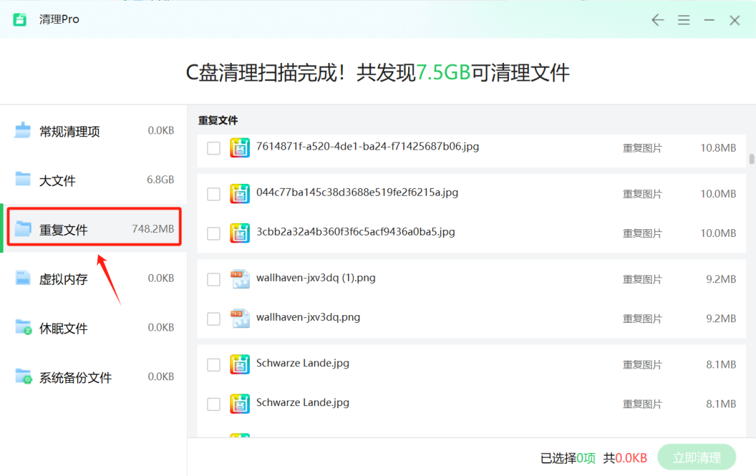 接下来便是重复文件,这个实际上也非常重要,尤其是很多图片、文档、资料,往往会重复下载保存的问题:
