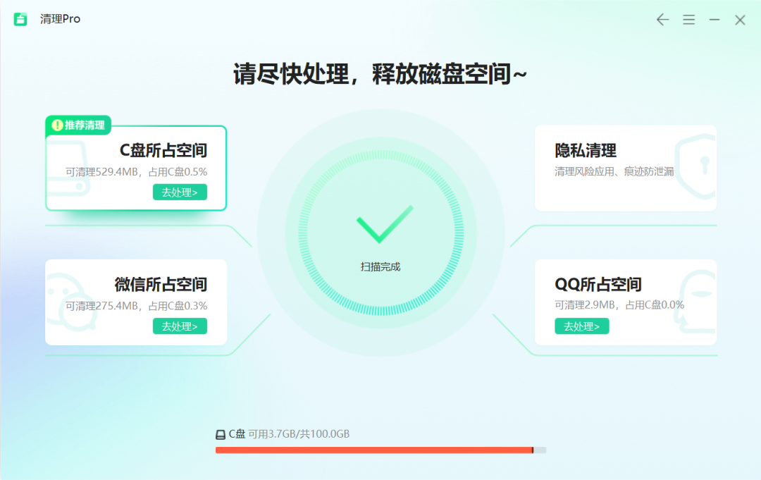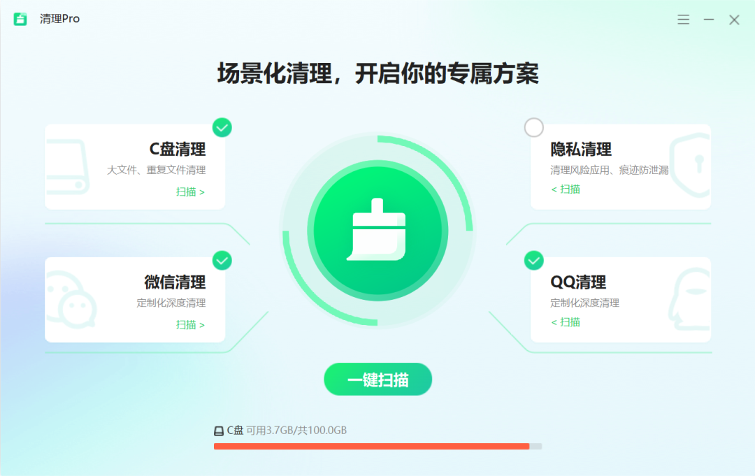 C盘清理工具(单文件免安装),这是一款全新推出的C盘清理工具!它最大的特点是小巧轻便、无需折腾,便能一键扫描、清理C盘;除了常规清理之外,也可以根据不同类别手动筛选,清理能力更是令人叹为观止!并且也都是完全免费,没有任何广告,更是无需注册登录即可使用!