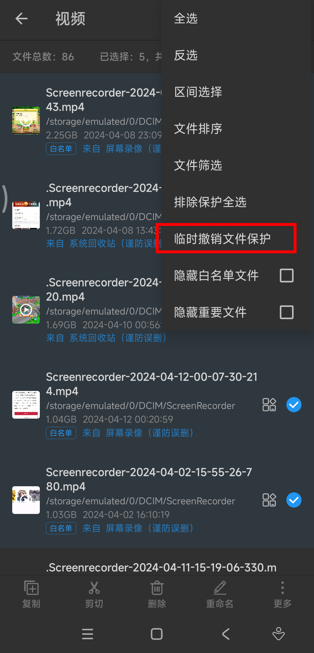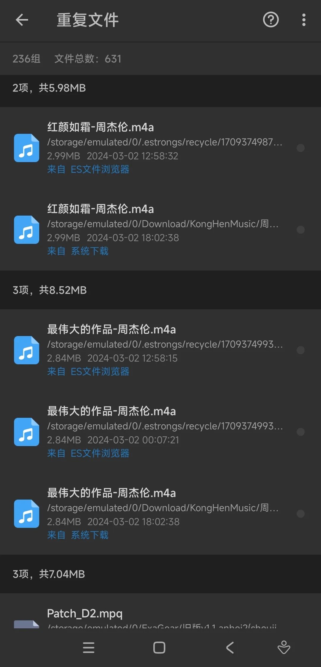 除了存储分析外,也提供了文件管理器功能,可以对所有文件进行复制、粘贴、移动搜索等操作。