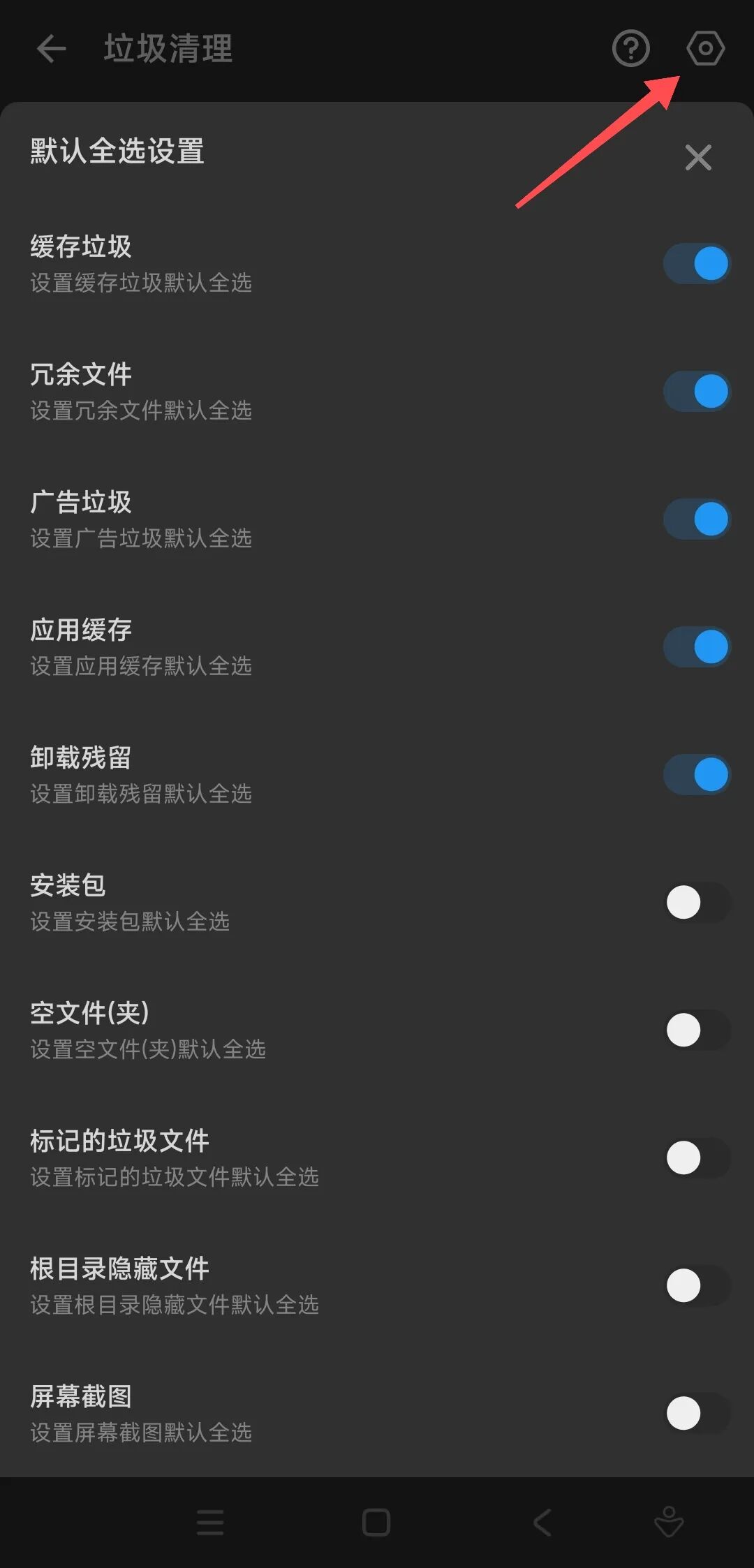 点击右上角的设置菜单,也可以选择扫描的范围种类。