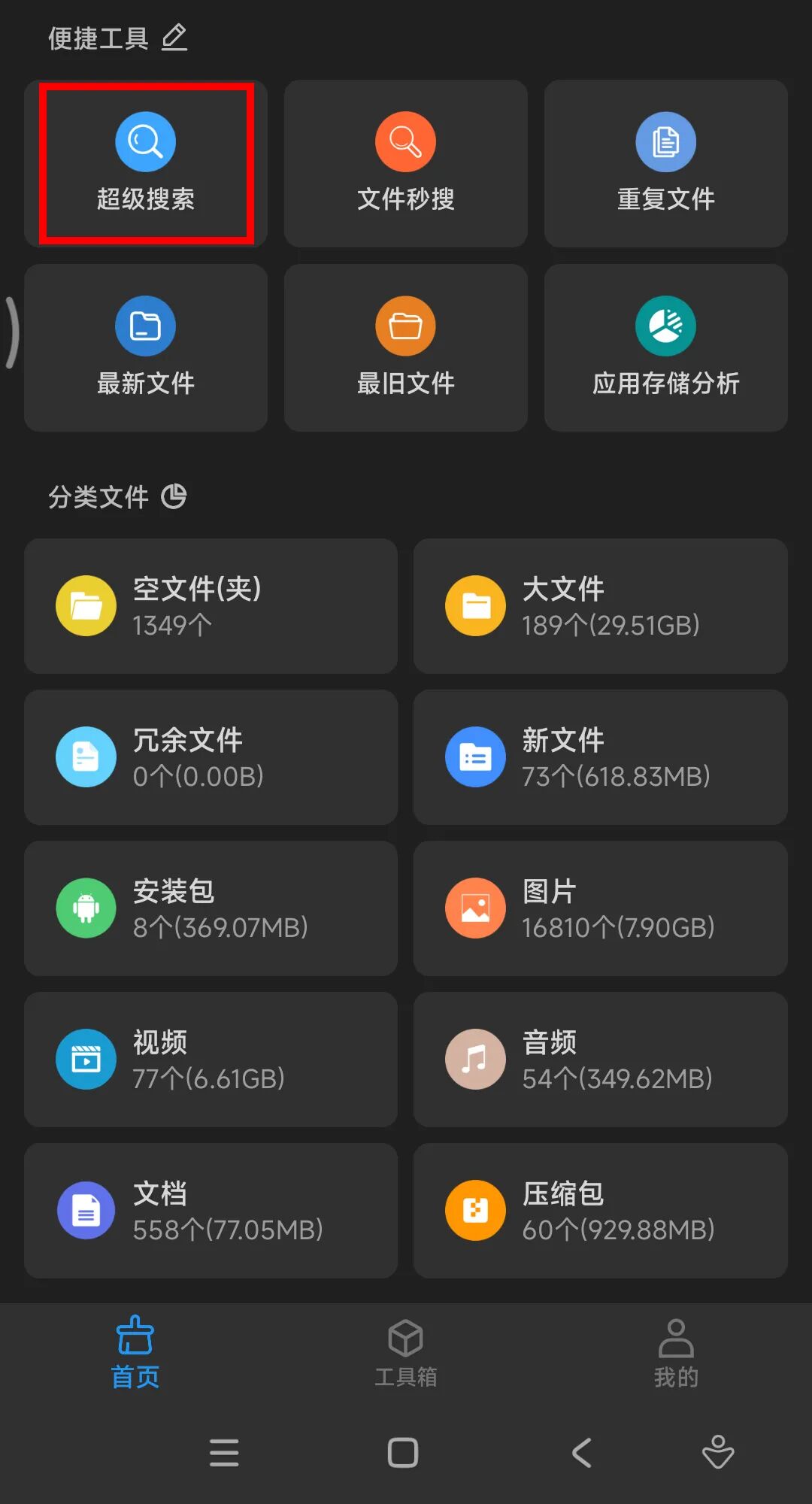 除了以上功能外,软件也提供了不少便捷工具,比如这个超级搜索: