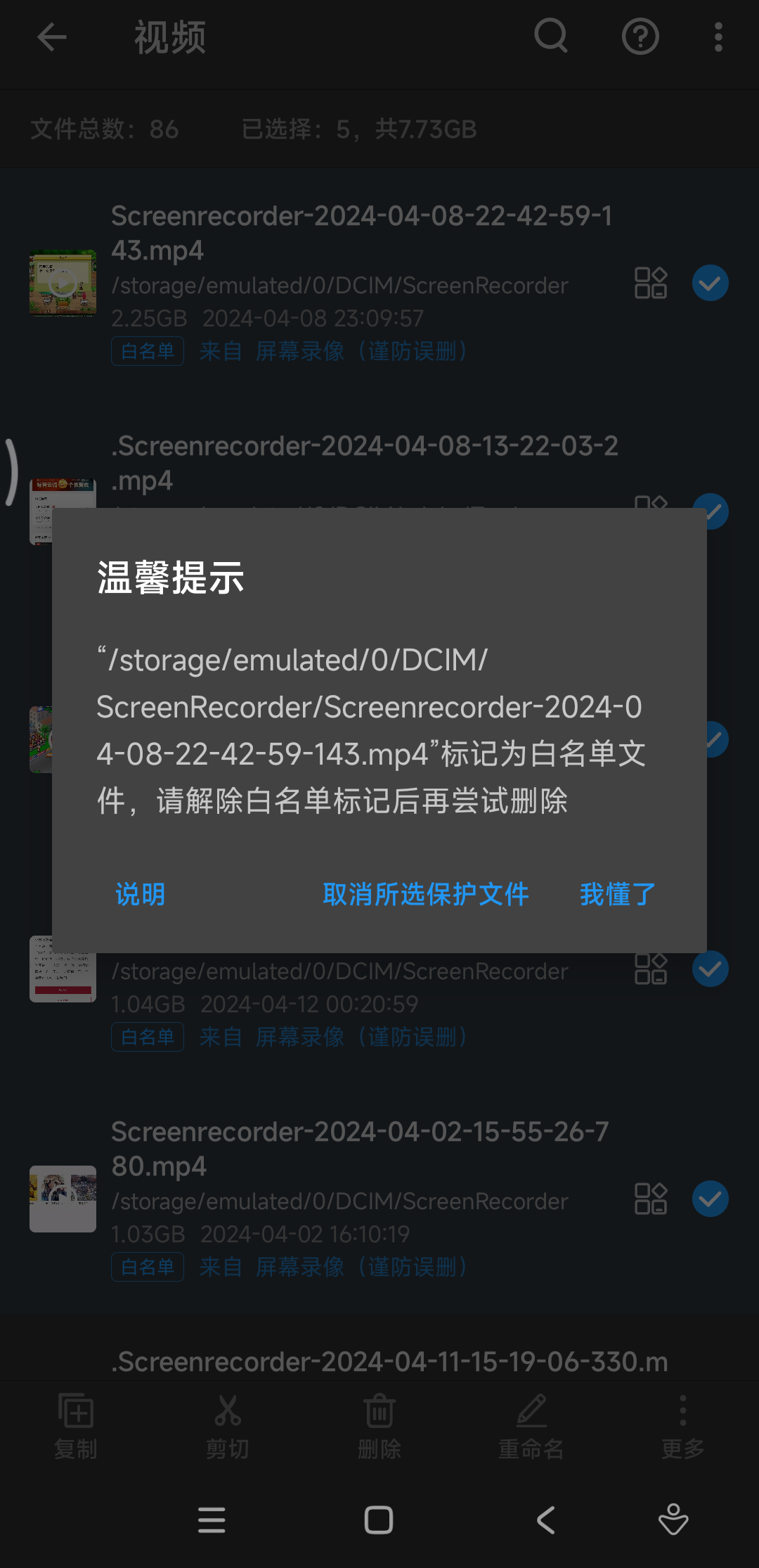 不过正常情况下,这里是没有办法直接删除的,因为手机相册里的内容归属在白名单里。