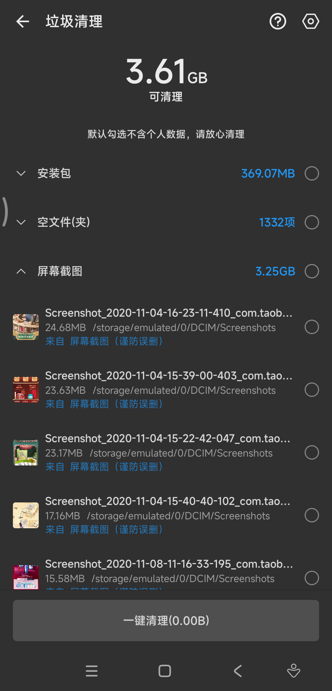 接下来,便可一键清理所有不要的内容。