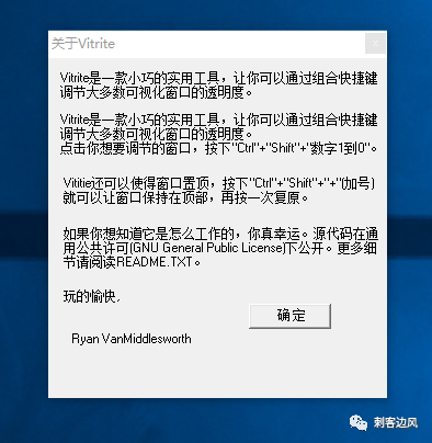 Vitrite桌面透视,一款能调整电脑程序透明度,从而实现透视效果的软件,从根本上来说,这就是是上班摸鱼必备的神器!