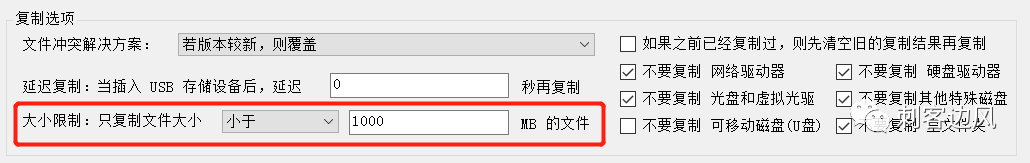 拷贝文件的大小限制也可以设置,避免拷贝太多的福利视频,当然,如果这就是你的目标,那就另说了.....