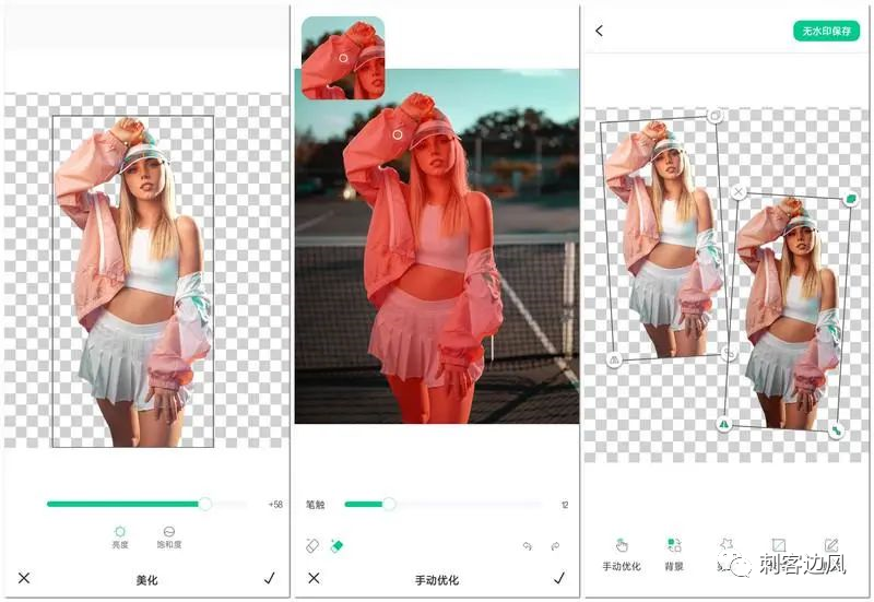 如果你对全自动的处理不太满意,软件也提供了手动优化,支持的项目不亚于PS操作,好评!