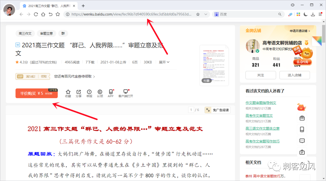说一千道一万,不如亲自演示一遍!我们可以打开百度文库,找到需要下载的文档,然后直接复制当前页面地址: