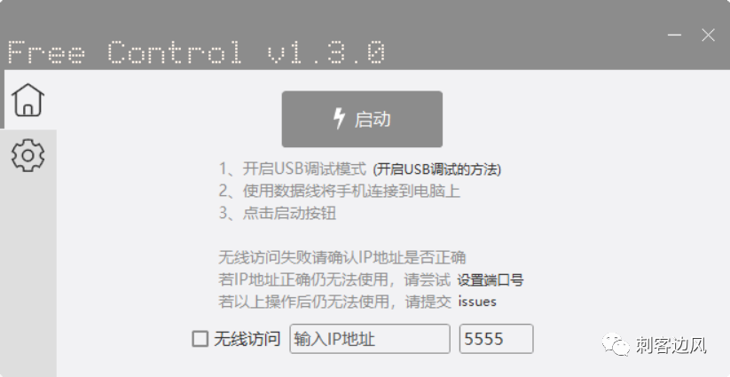 操作界面相当简洁,就一个小窗口,但千万别小看它,功能却是极为强大,首先,我们需要先开启手机的USB调试模式(具体查阅手机说明书),连接USB数据线,最后点击启动即可,十分好简单。