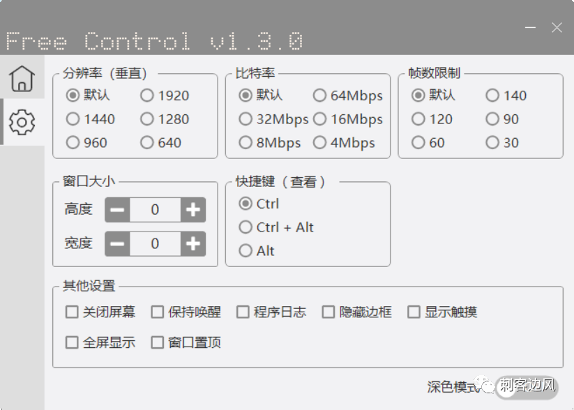 除此之外,软件还提供了各式各样的参数调节功能,比如设置分辨率、比特率、帧数、窗口大小等等,这块很多小伙伴应该都很熟练了: