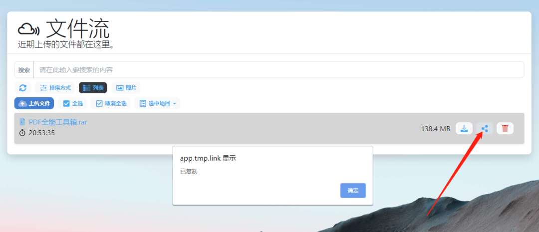 文件上传完后,我们可以在文件流中找到刚刚上传的资源: