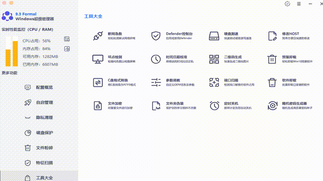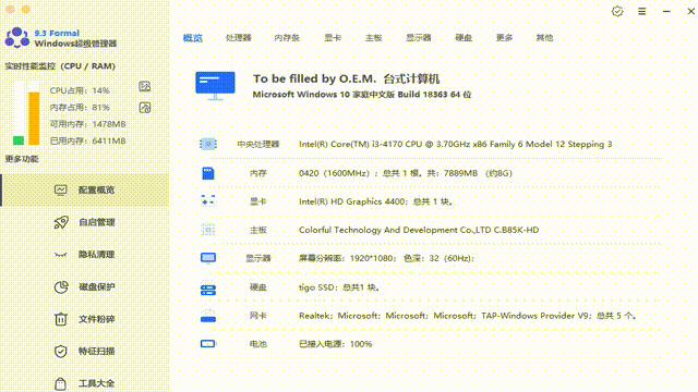 Windows超级管理器,一款专业的电脑管理工具,简单来说就是搞定鲁大师的一套,而且没有任何广告,甚至附带了更多逆天黑科技!
