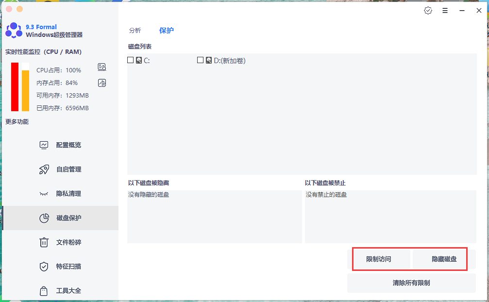 提供的限制访问和隐藏磁盘,可以满足大家任何保密需求。